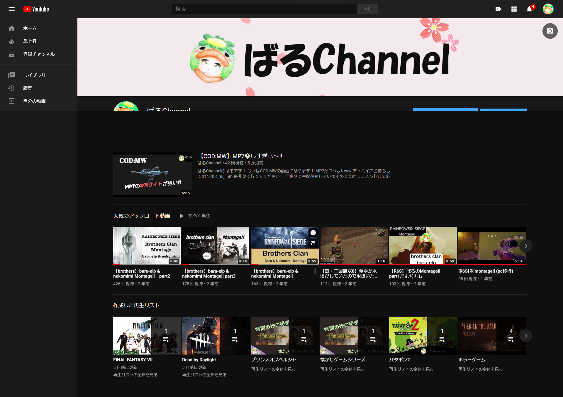 チャンネルアートも春仕様になっていますが